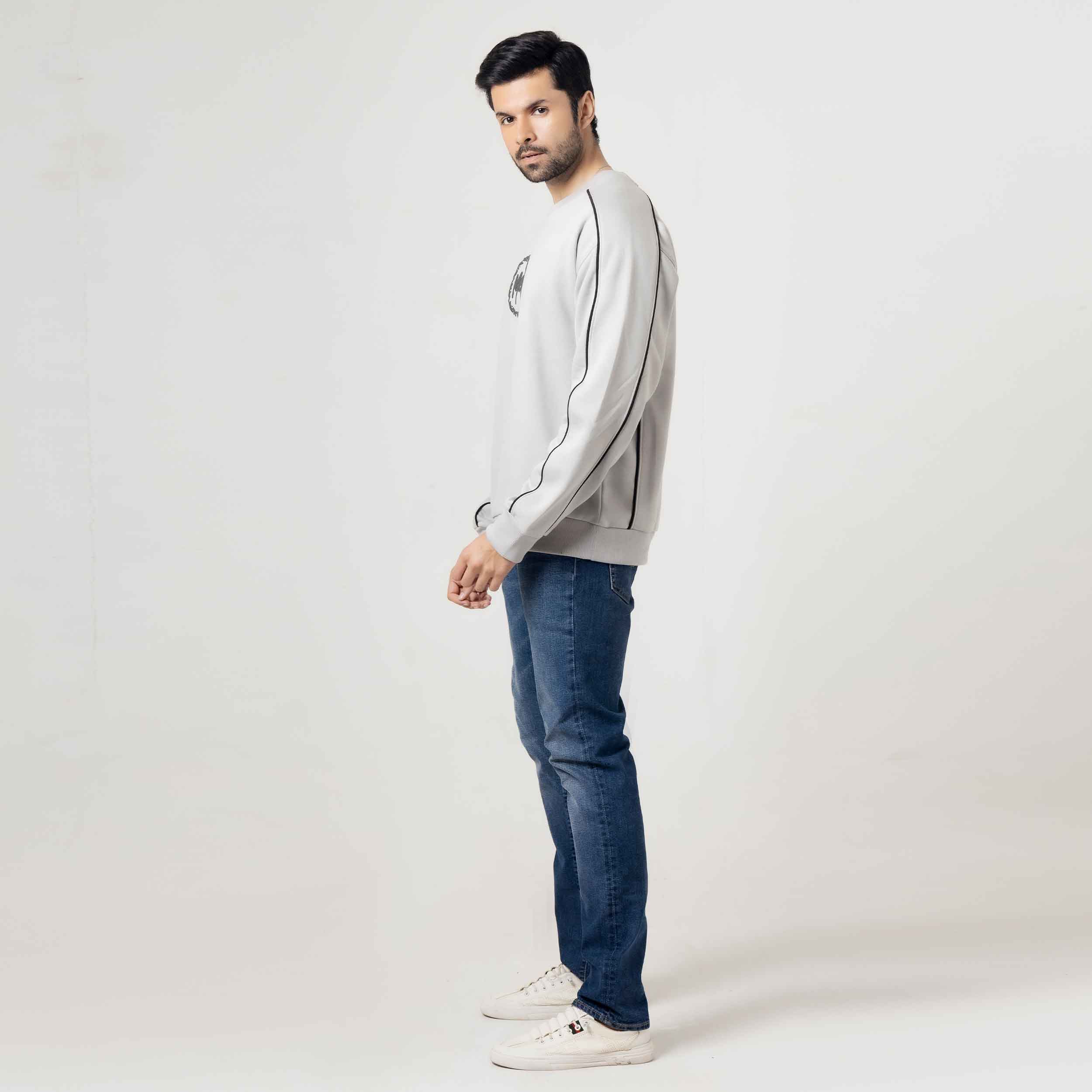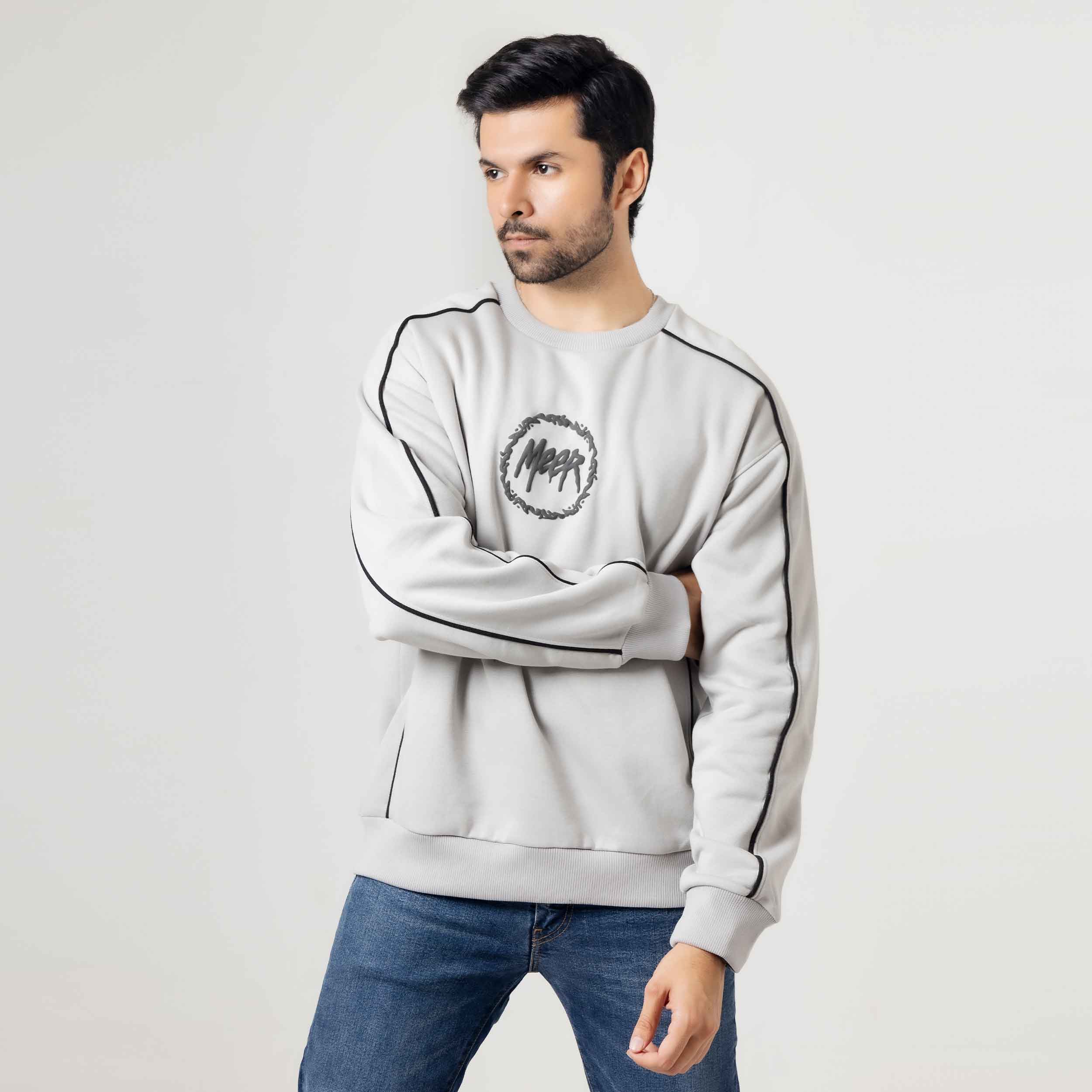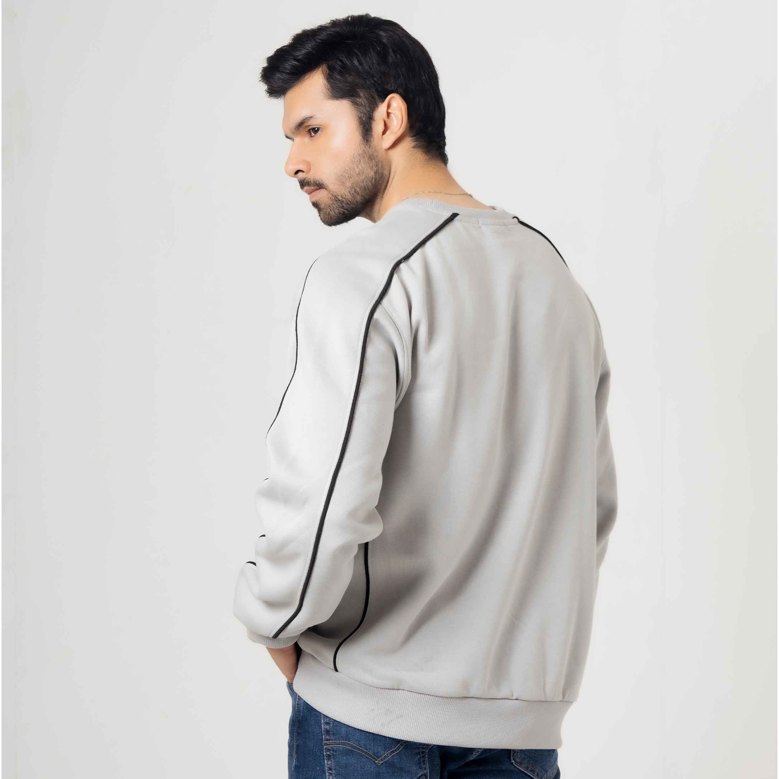 Light Grey Piped Sweatshirt Elevate your casual wardrobe with this refined sweatshirt, featuring distinctive piping details that add sophisticated dimension to a versatile light grey base. The piped trim creates clean, structured lines across the design, offering a polished alternative to standard sweatshirts. Crafted for comfort and style, this piece transitions seamlessly from relaxed weekends to layered everyday looks. The neutral grey tone pairs effortlessly with any wardrobe, making it an essential staple for those who appreciate understated elegance in their basics.