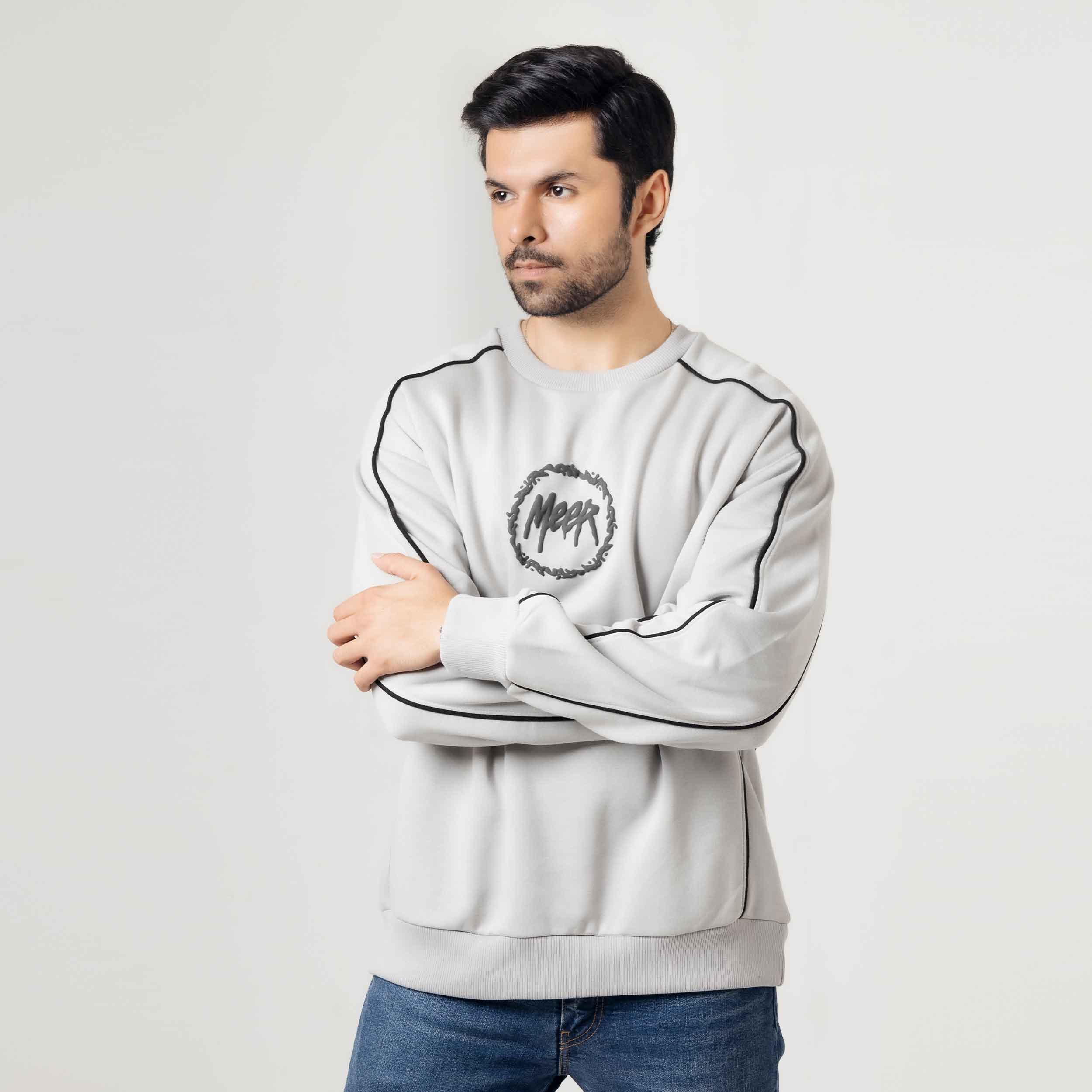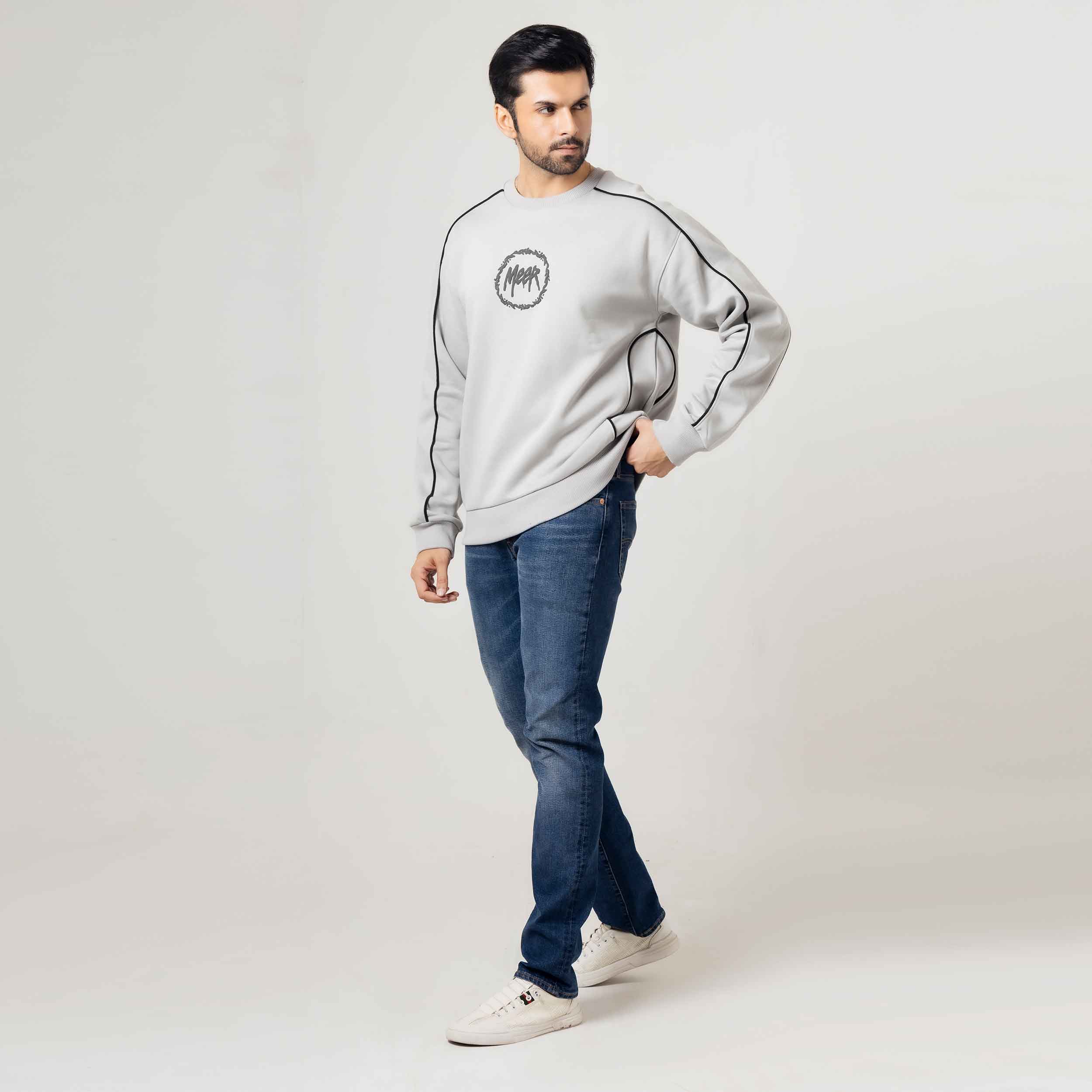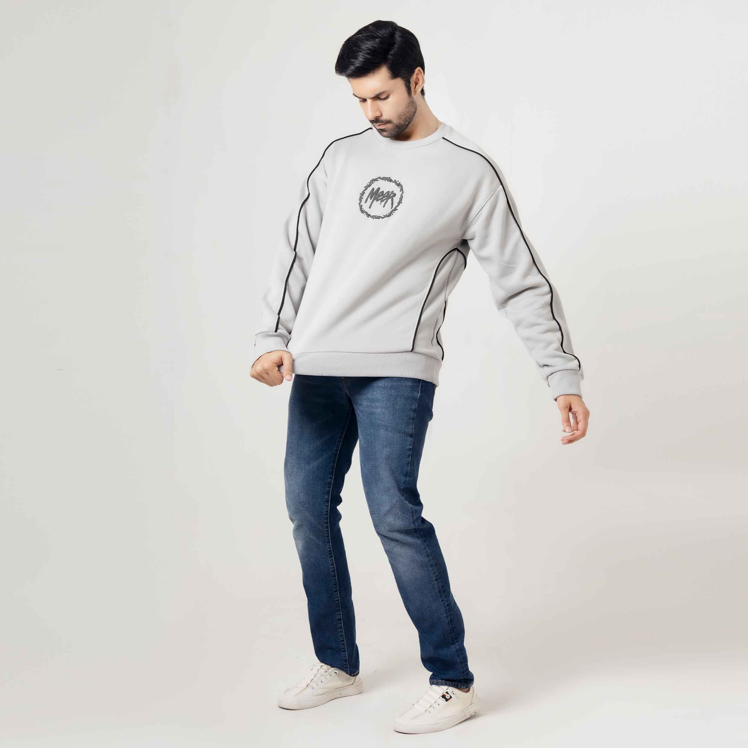 Light Grey Piped Sweatshirt Elevate your casual wardrobe with this refined sweatshirt, featuring distinctive piping details that add sophisticated dimension to a versatile light grey base. The piped trim creates clean, structured lines across the design, offering a polished alternative to standard sweatshirts. Crafted for comfort and style, this piece transitions seamlessly from relaxed weekends to layered everyday looks. The neutral grey tone pairs effortlessly with any wardrobe, making it an essential staple for those who appreciate understated elegance in their basics.