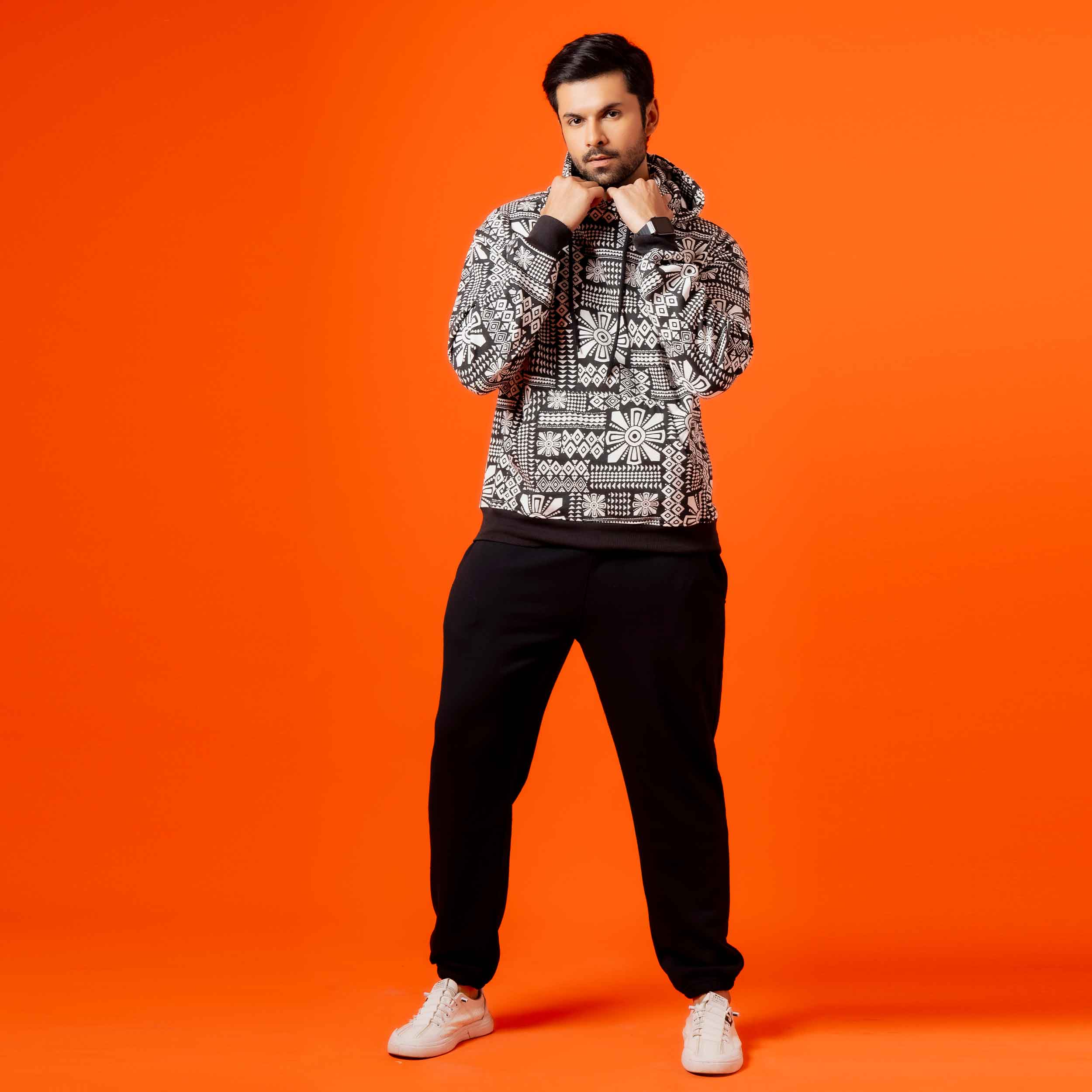 This monochrome graphic fleece track suit merges performance and style through thoughtful construction. The soft fleece fabric provides thermal regulation and durability, while the coordinated jacket-and-pants ensemble eliminates styling guesswork. Strategic graphic placement adds dimension without compromising the clean aesthetic. Built for layering flexibility, the suit adapts to varying activity levels and seasonal transitions. The structured fit balances comfort with a polished appearance, making it equally suited for training sessions or casual everyday wear.