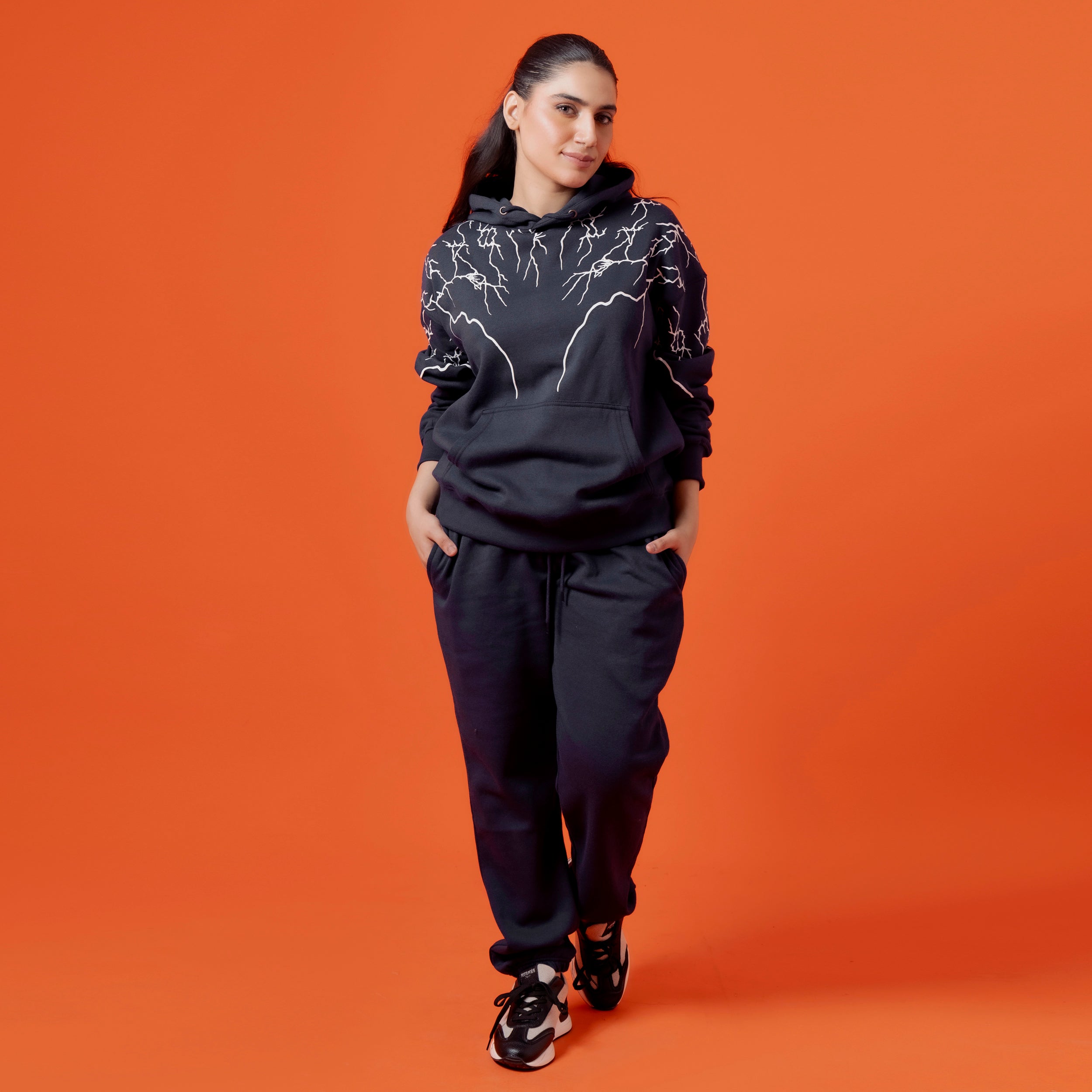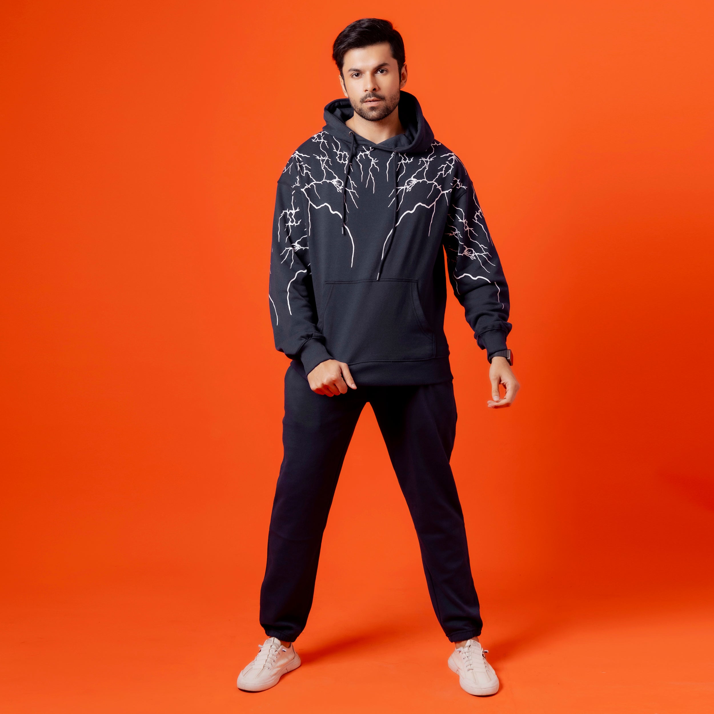 This unisex black graphic fleece tracksuit combines premium comfort with contemporary design. Crafted from quality fleece material, it offers superior warmth and durability for year-round wear. The striking graphic print elevates the classic black base, creating visual depth while maintaining versatility. The coordinated two-piece set features a tailored silhouette that works across multiple occasions—from casual outings to relaxed social settings. The inclusive unisex cut ensures an accessible fit for diverse body types, while the soft fabric delivers the comfort needed for extended wear. An essential addition to any modern wardrobe seeking effortless style and practical functionality.